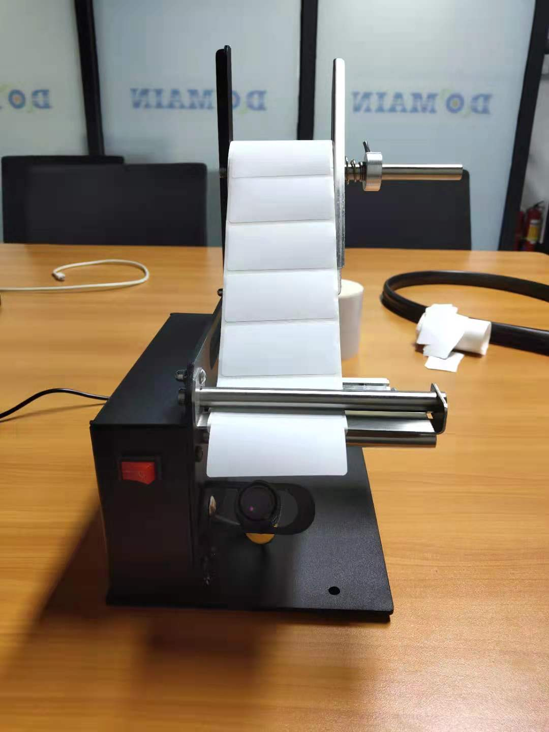 标签剥离机用于标签的自动剥离,剥离的标签被取用后,可自动剥离下一张标签,提高工人取用标签效率,牵引力强可一次性剥离单排或者多排标签。
