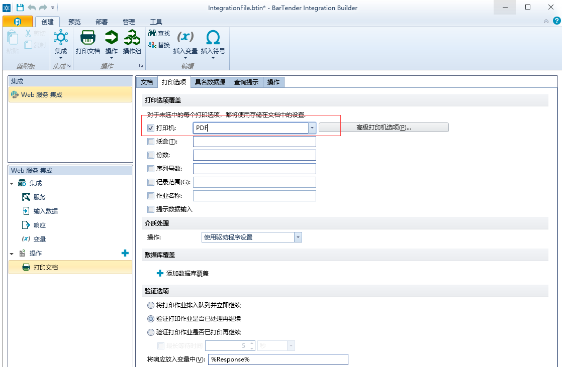 用的是具名数据源来链接文档和网页,给需要变化的数据命名,触发打印时可以在URL路径后面输入新的变量来打印不同内容的标签。