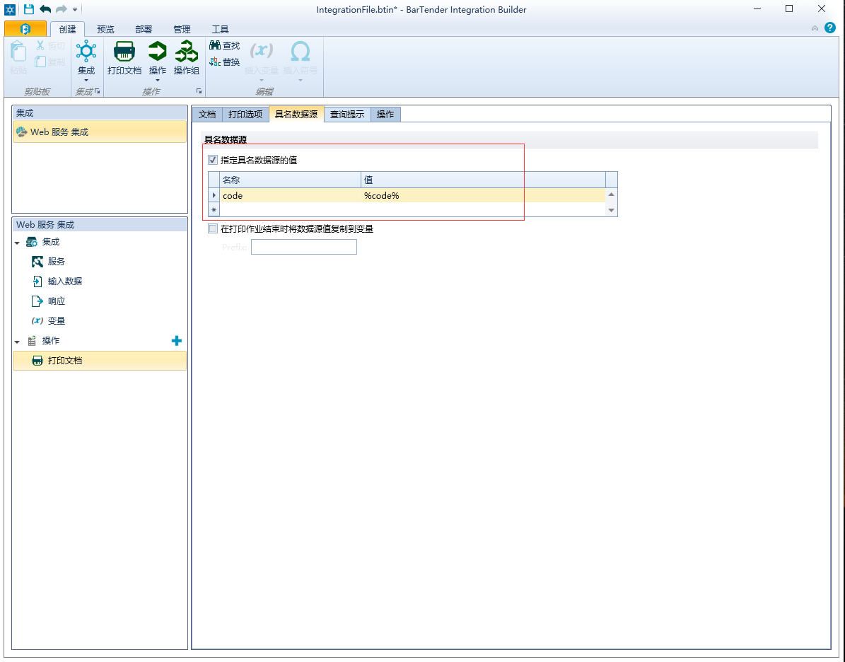 5:勾选指定具名数据源的值,将具名数据源的名称和值填入,如下图: