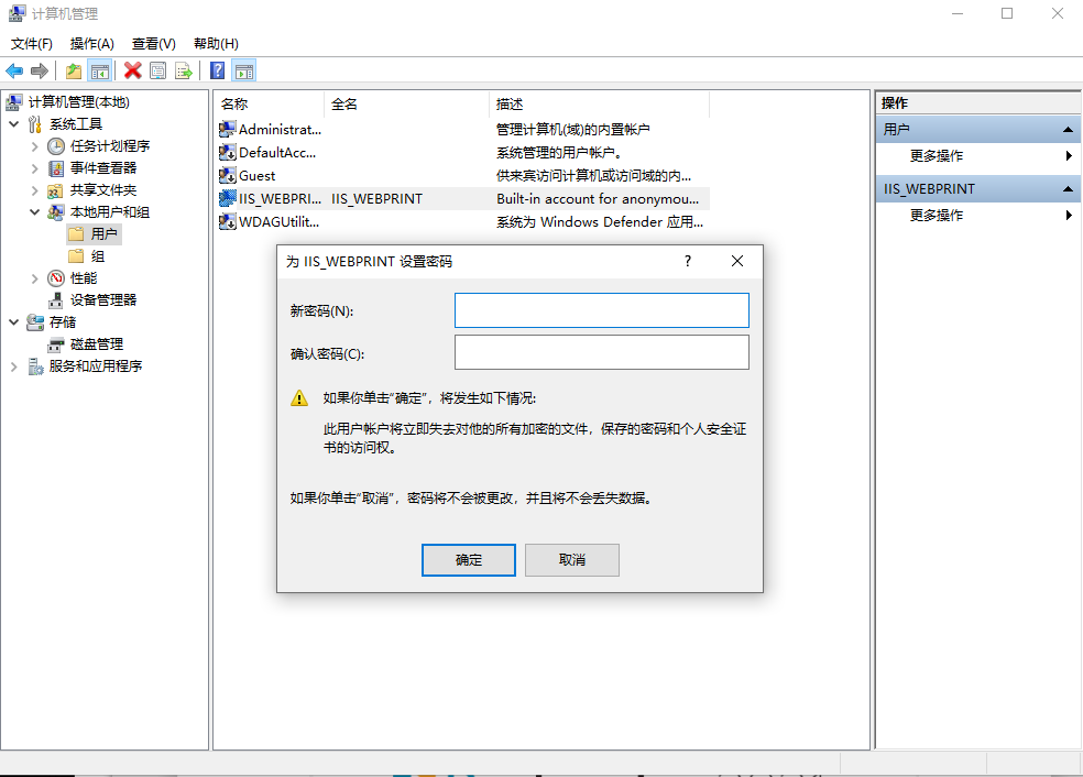 3. IIS用户会随着选择安装print portal之后出现,打开计算机管理为IIS用户设置密码,在安装向导输入密钥即可安装,如下: