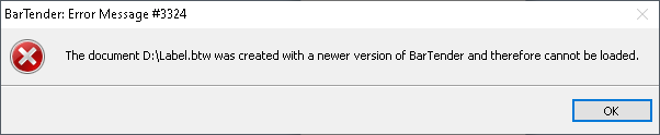 BarTender Designer打开文档文件时,出现错误消息#3324