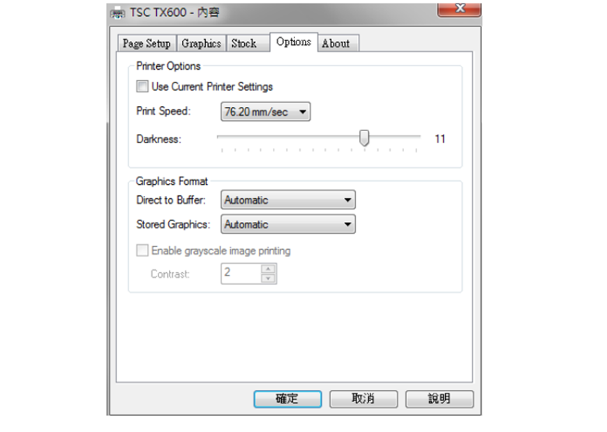 第二步:选择“选项”选项卡并取消选中“使用当前打印机设置”行动;
