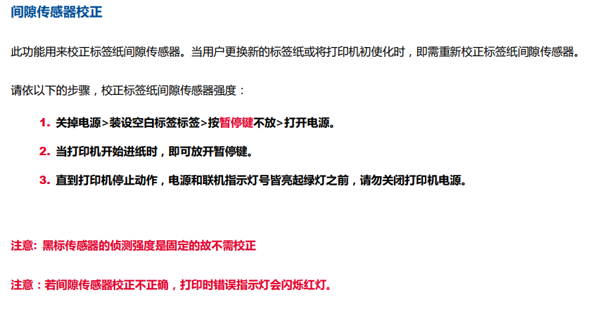 - 打印机会自动输出两张标签,此过程中会校正间隙传感器。