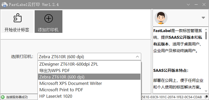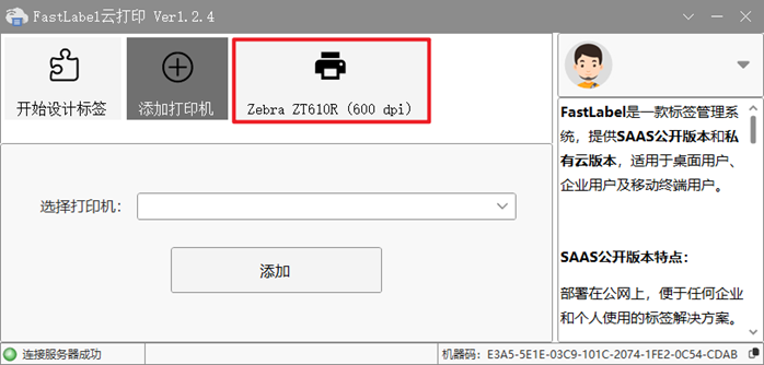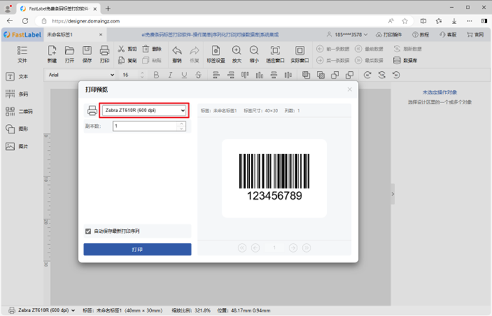 以上设置完成之后,在FastLabel上进行打印的时候就可以调用已经添加的打印机了。