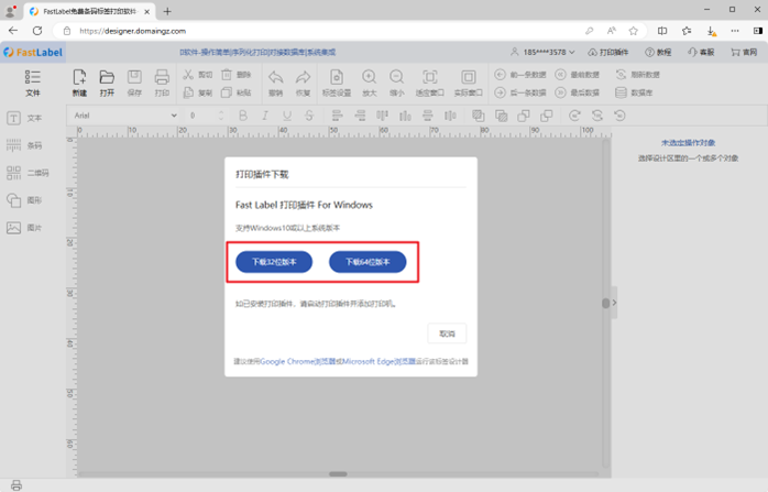 1. 点击Fastlabel标签设计器右上角 进行打印插件下载。