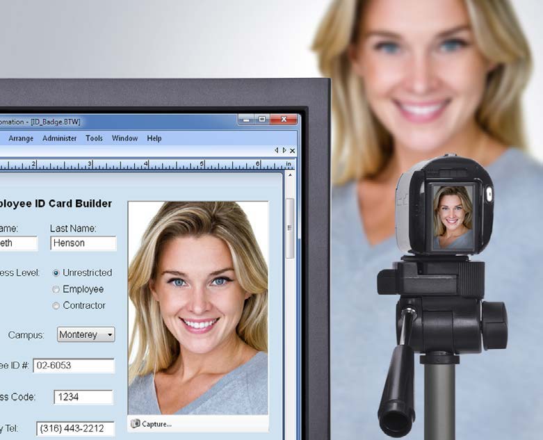 随时可用的打印时图像采集功能 将照片采集和其他图形扫描功能纳入到身份证的制作过程中需要集成各种必要的硬件 和软件组件,这个过程既繁琐又耗时。不必担心,BarTender 现在可以为您完成这项任务,包括: