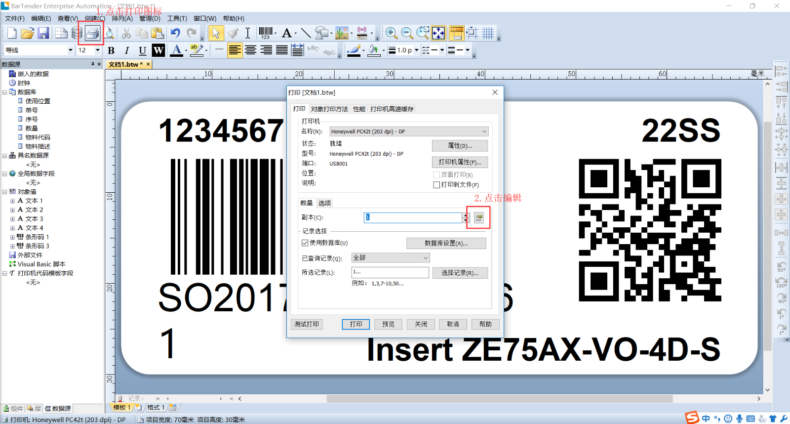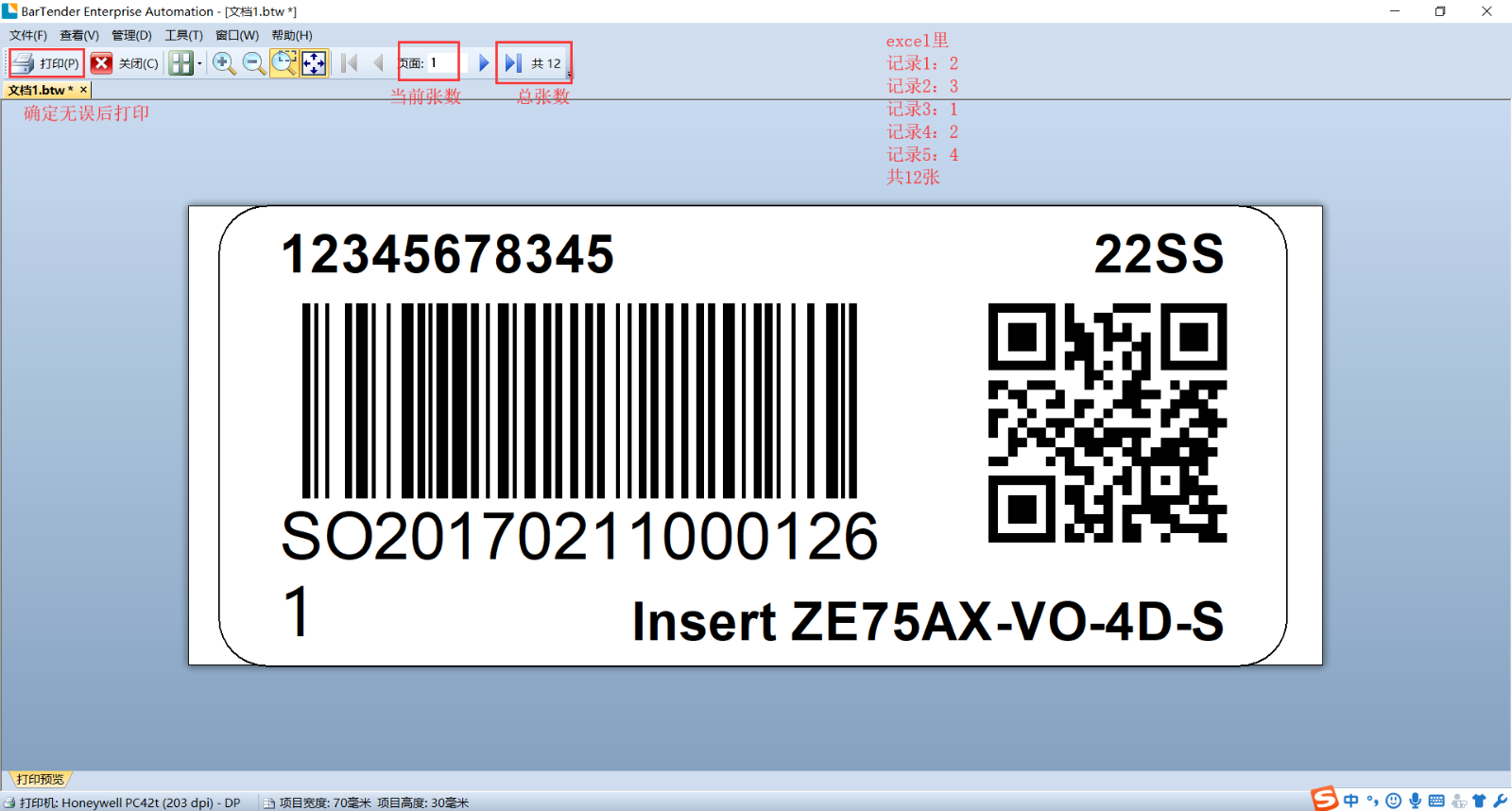 Bartender导入excel打印标签