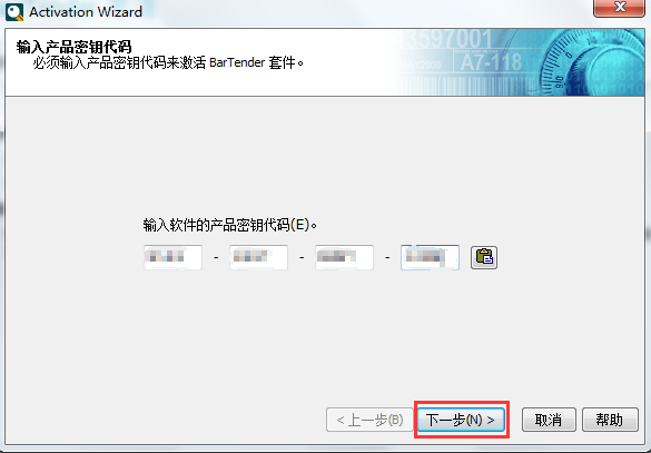 在弹出的对话框中输入产品密钥,点 下一步 按提示激活产品