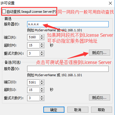 如果因为服务器和客户端跨网段而出现找不到License Server的情况,请在客户端电脑上按以下设置指定服务器地址