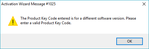 激活向导消息#1025:输入的产品密钥代码适用于不同的软件版本。请输入有效的产品密钥代码。