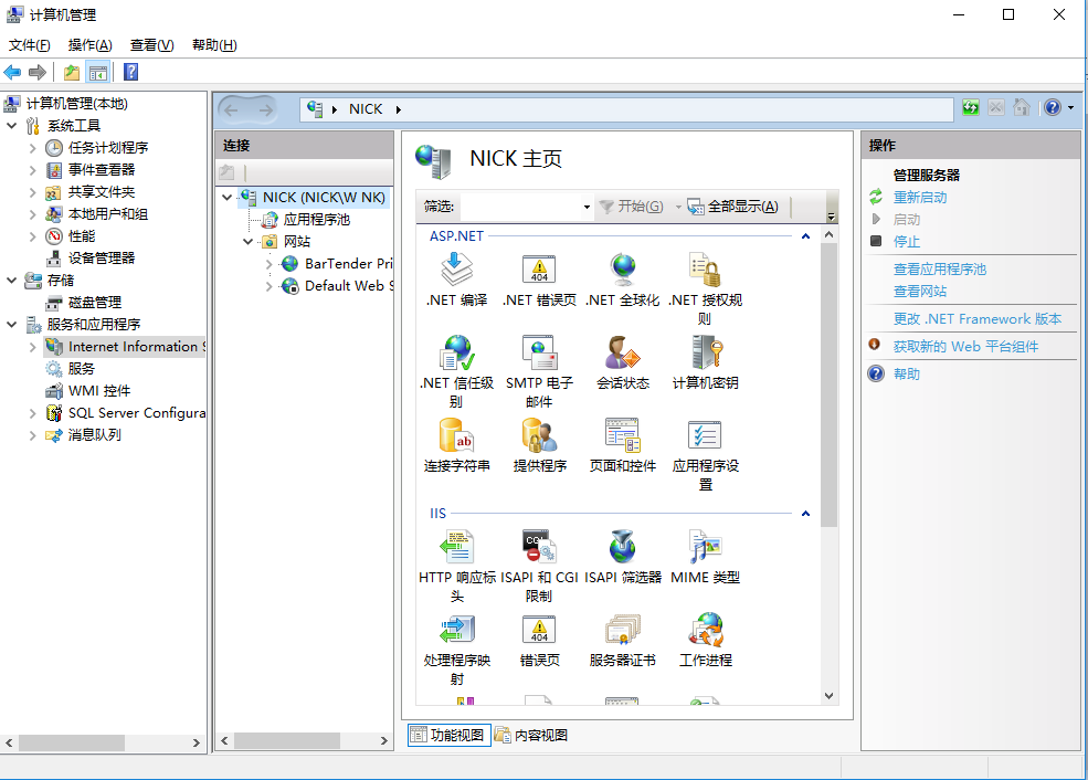 在服务器上安装 Bartender 或 WPS 之前,请确保已安装 IIS。安装说明如下