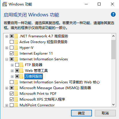 3. 展开“Internet 信息服务”,然后依次展开“万维网服务”和“应用程序开发功能”。