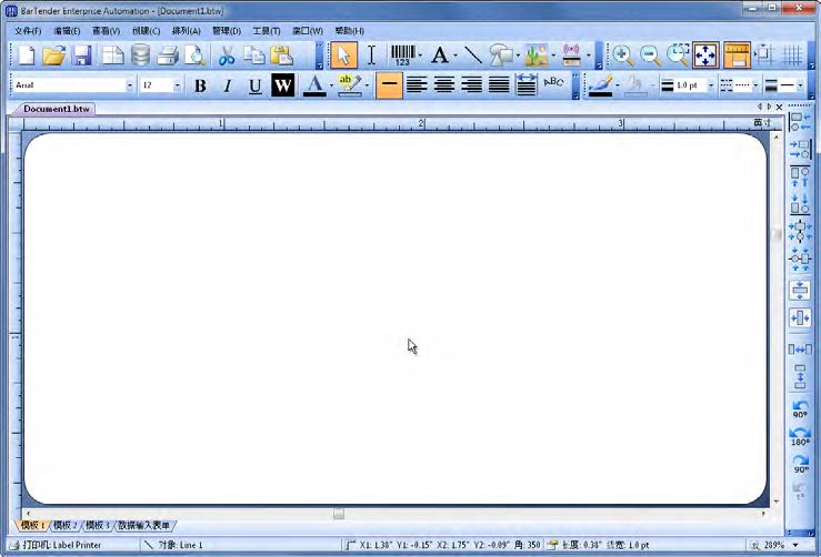 新 BarTender 文档中的空模板。