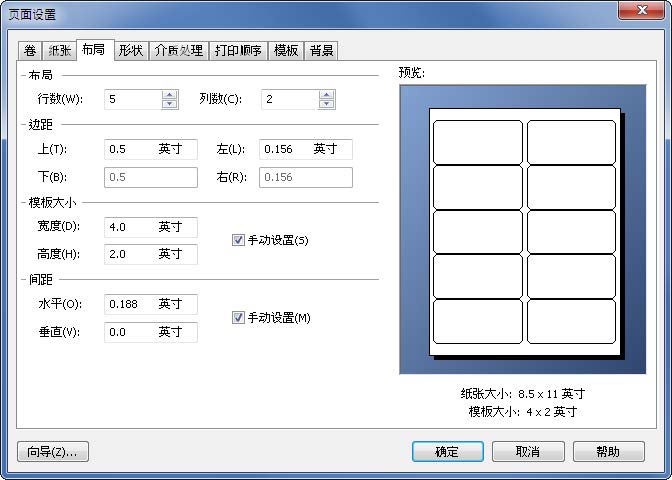 5. 单击布局选项卡、并指定页边距以及行数和列数。(这些选项一般只用于激光打印机、但偶尔感热打印机的标签卷也有列数和/或行数。)