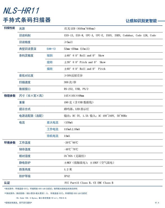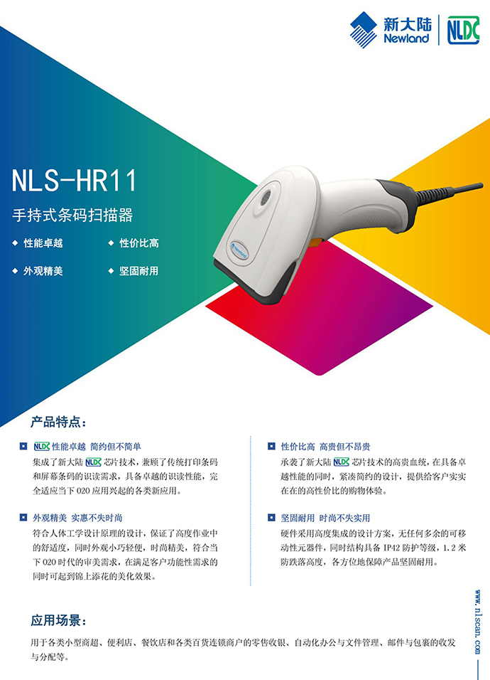 NLS-HR11手持式条码扫描器能快速地识读纸张/屏幕的一维条码。该产品拥有良好的一维低品质条码识读性能,低功耗,接口丰富,具有良好的性价比。适用于各类中小型商超、便利店、餐饮店和各类百货连锁商户的零售收银、自动化办公与文件管理、邮件与包裹的收发与分配等。