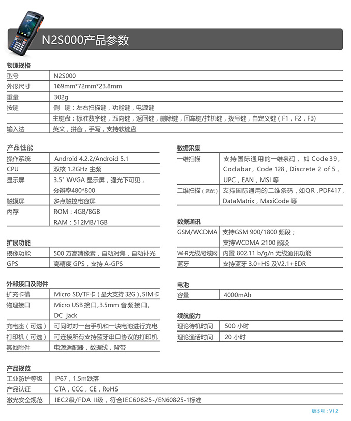 N2S000是一款综合性能高、适用K8一触即发人生赢家广的新一代安卓智能终端,25度黄金扫描倾角、电容触控功能全面。