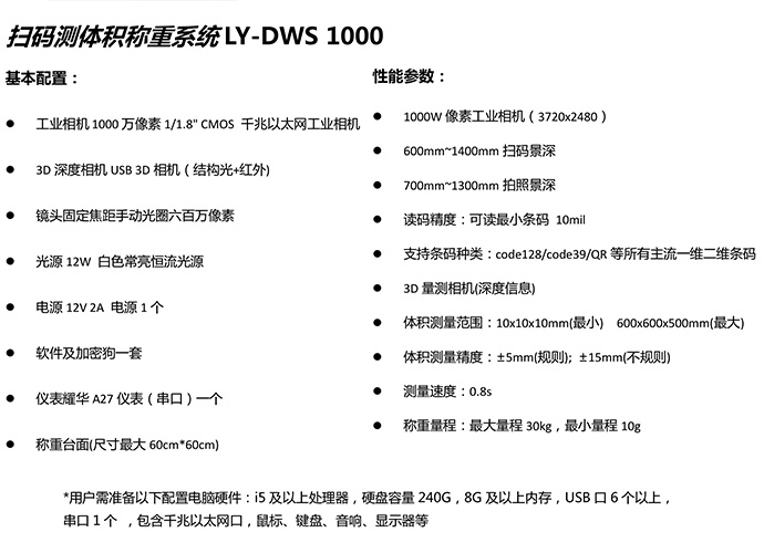 扫码测体积称重系统LY-DWS1000