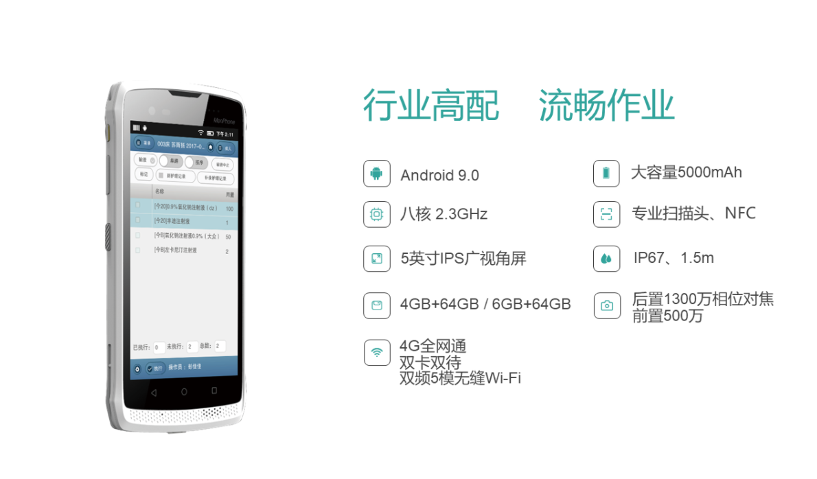 显示屏幕:5.0英寸显示屏,电容式触摸;1280(H)×720P(W)