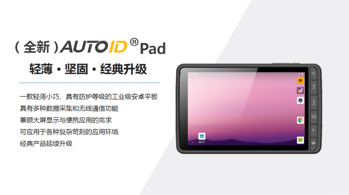 东大集成AUTOID Pad一款轻薄小巧、具有防护等级的工业级安卓平板,具有多种数据采集和无线通信功能,兼顾大屏显示与便携应用的需求,可应用于各种复杂苛刻的应用环境,适用于生产制造行业应用、零售/电商仓储、快递固定式/分拣等K8一触即发人生赢家。