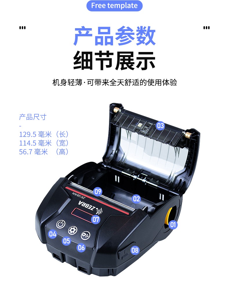 ZEBRA ZR138无线蓝牙移动打印机,相同价位里性价比最高,轻薄、便携,且易于使用。可提高效率,改善工作流。这款经济实惠的打印机可以打印收据和标签。黑白 OLED 显示屏,用户可以看到设置,包括介质状态、蓝牙连接状态和打印浓度,一目了然。可用于超市、食品、要点等行业。