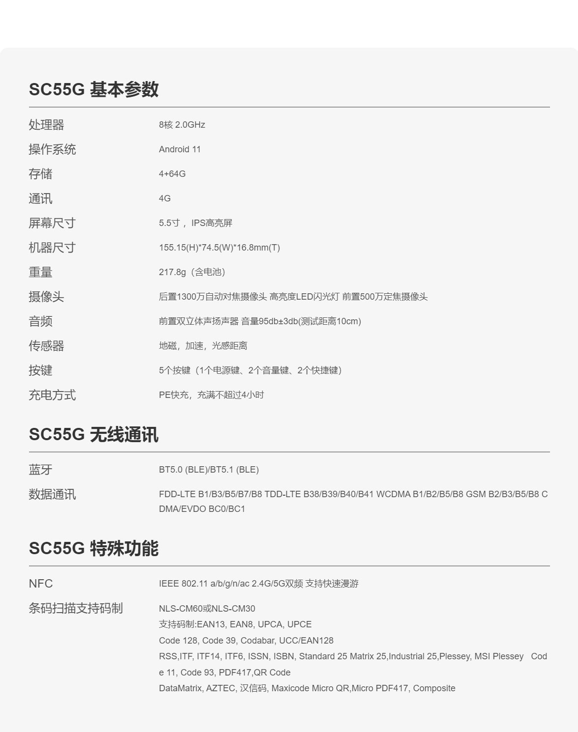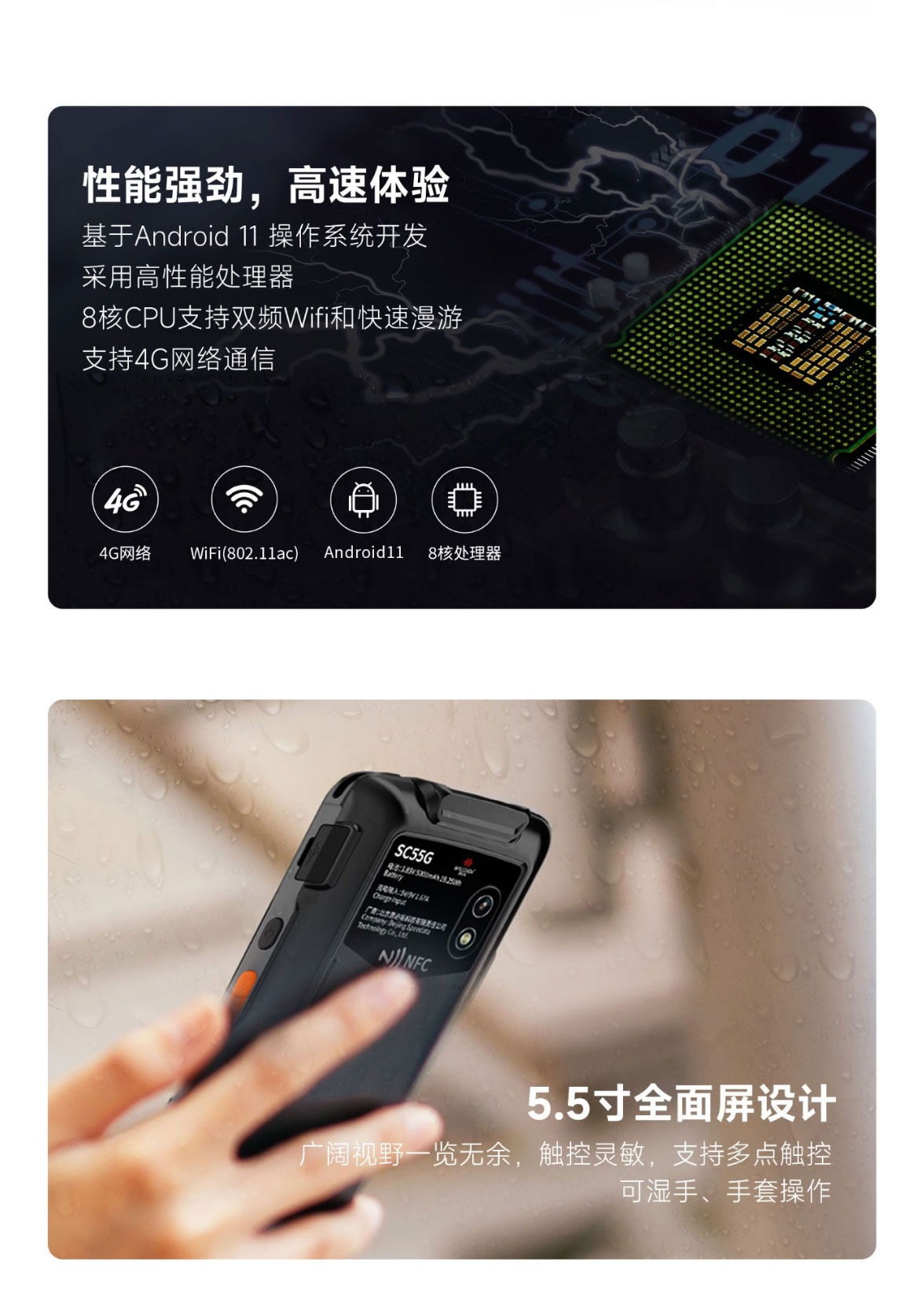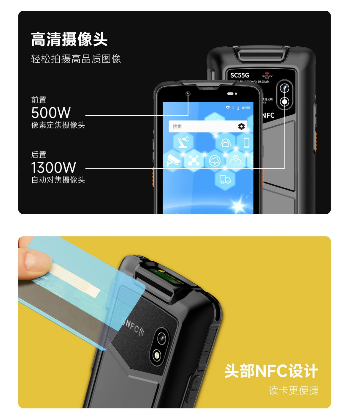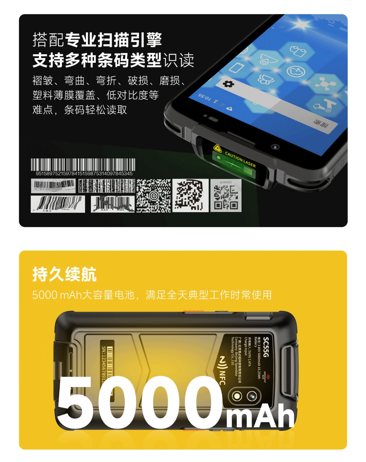 SC55G是思必拓推出的一款全面屏防爆条码手持终端,具备以下特性: